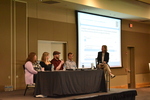 Panelists Heather Carter, Emory Morgan, Ryan McFarlane, John Kuefler, and moderator Andra Stefanoni. Ryan answers a question.