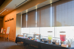Food table set up by the windows at the AI Symposium.