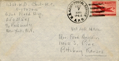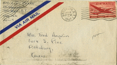 Envelope from Hazel Angwin Chute addressed to Mrs. Fred Angwin, March 7, 1947