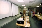 Color photo of a professor holding class on what appears to be finding lesson plan materials, observed by the Presiden'ts Council