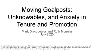 • Moving Goalposts: Unknowables, and Anxiety in Tenure and Promotion by Mark Diacopoulos and Ruth Monnier