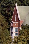 Color photo of the western wing of Porter Hall, seen through the trees.