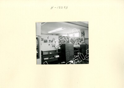 Black and white photo of a display for photos and books related to "Autumn The Season of Plenty" and "Farming Then & Now"