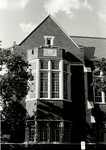 Black and white photo of the exterior of Porter Library, focusing on the western wing of the building. A relief above the second story windows reads "Science"