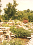 Picture of a rocky waterfall and stream taken at the Wichita Botanical Gardens, possibly at the Martha Perriott Terrace Garden
