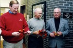 Color photo of three men at the ribbon cutting ceremony for the opening post-renovations at the Weede building. The man on the left may be Dr. Bryant, then president of the university.