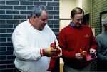 Color photo of two men at the ribbon cutting ceremony for the opening of the Weede building post-renovations. The one on the right may be Dr. Bryant, then president of the university.