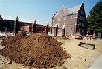 Color photo of the construction of Willard Hall Plaza. The ground is being leveled to add brick and cement.