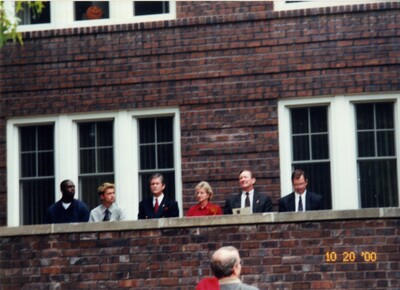 Color photo of Pitt State employees at the dedication of Willard Hall