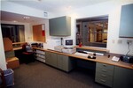 Color photo of a reception office in Willard Hall taken during an open house tour for employees, including President Bryant.