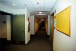 Color photo of the second floor hallway in Willard Hall, taken during an open house tour given to Pitt State employees and President Bryant.